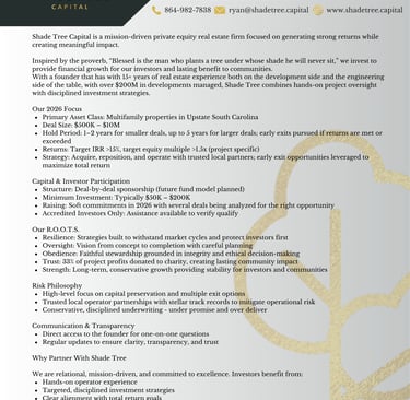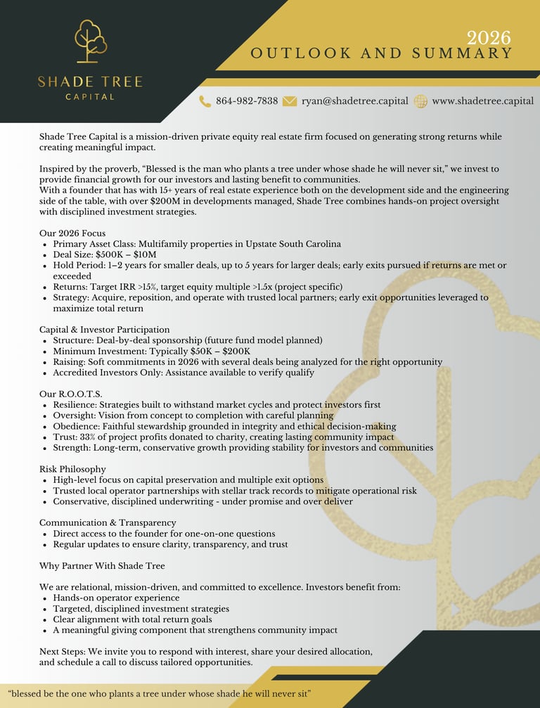 Connect with us to learn more about our unique approach to Real Estate investing to out perform traditional vehicles and do more good in this world.